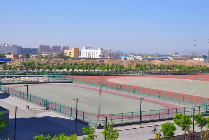 场地内设两个标准足球场,一块地面为人造草坪,另一块则是塑胶地面。