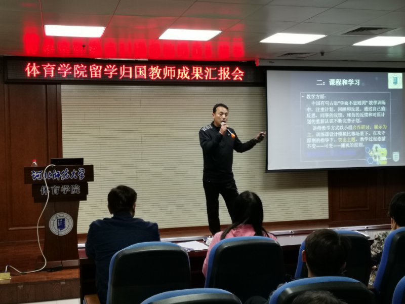 在体育文化讲堂召开留学归国教师成果汇报会。足球教研室黄大伟副教授和田径教研室崔冬雪副教授分别进行访学成果汇报,总结并分享各自留学国外的学习成果。百家乐在线