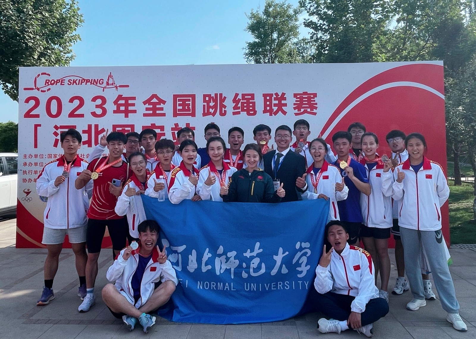5月16至18日,百家乐在线 跳绳队参加由国家体育总局社会体育指导中心主办的2023年全国跳绳联赛(河北固安站)的比赛。此次比赛是疫情后第一次全国线下比赛,共有来自全国14个省(市、区)的580余名绳友参与。百家乐在线 跳绳队在比赛中共获得9金7银7铜的优异成绩。