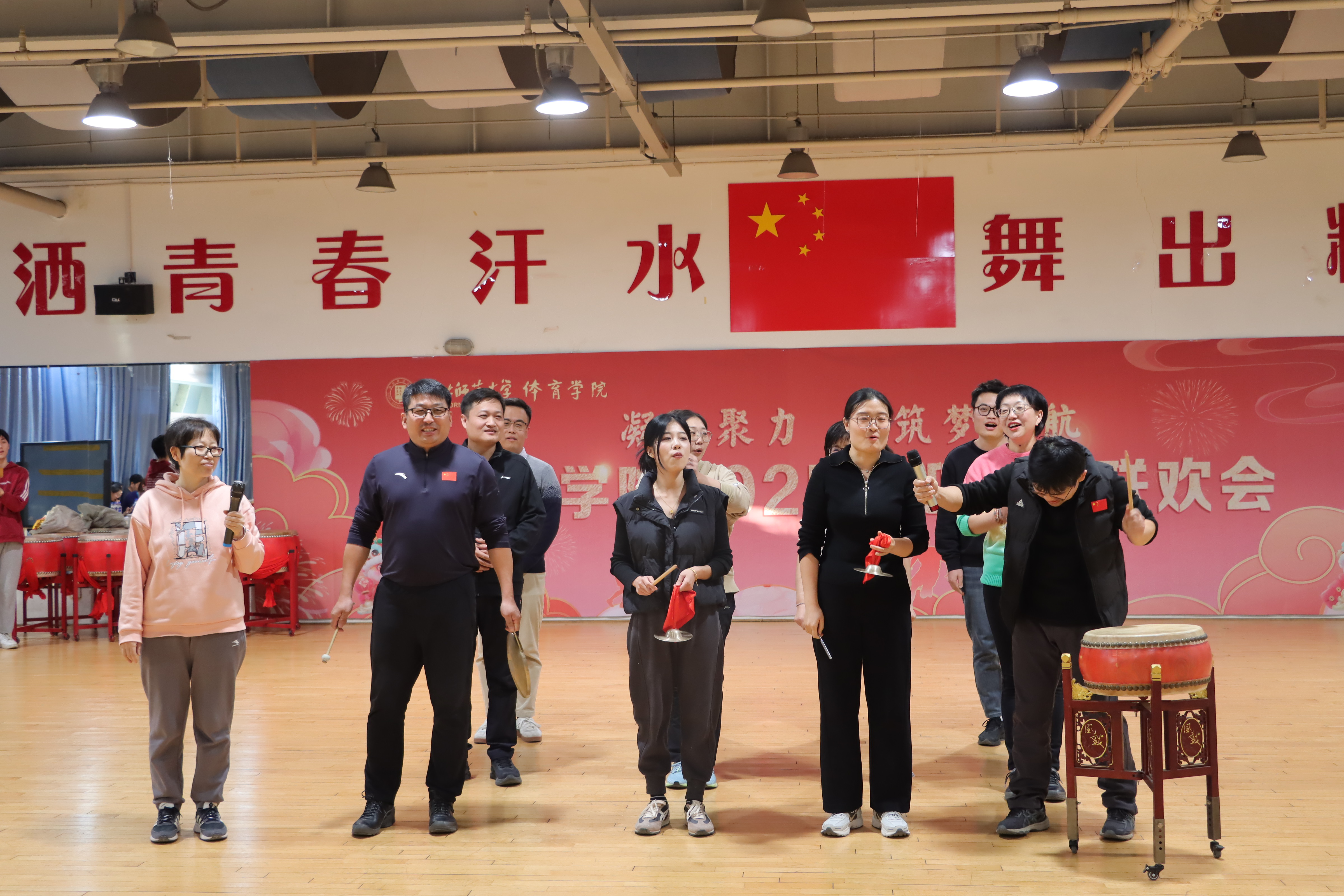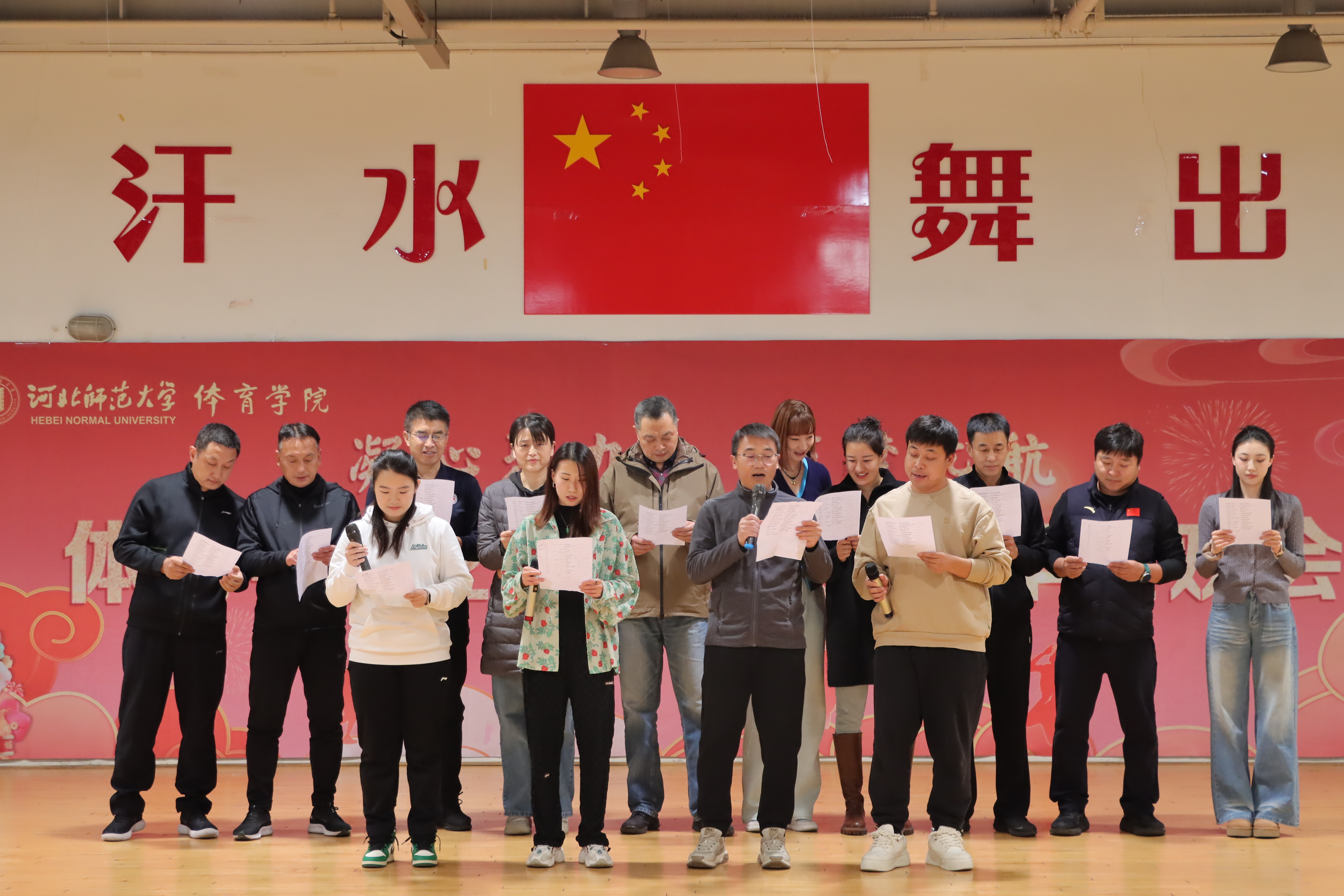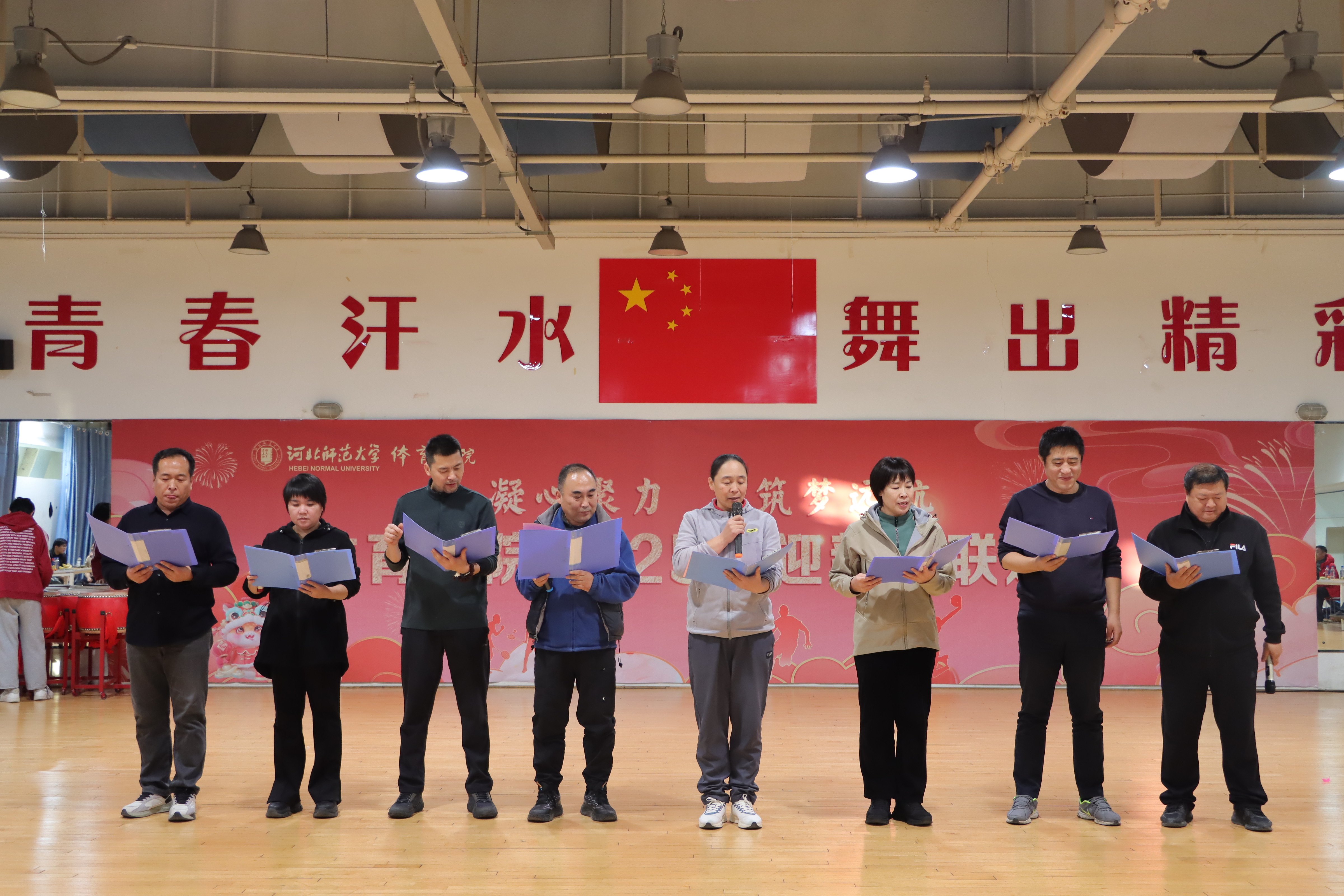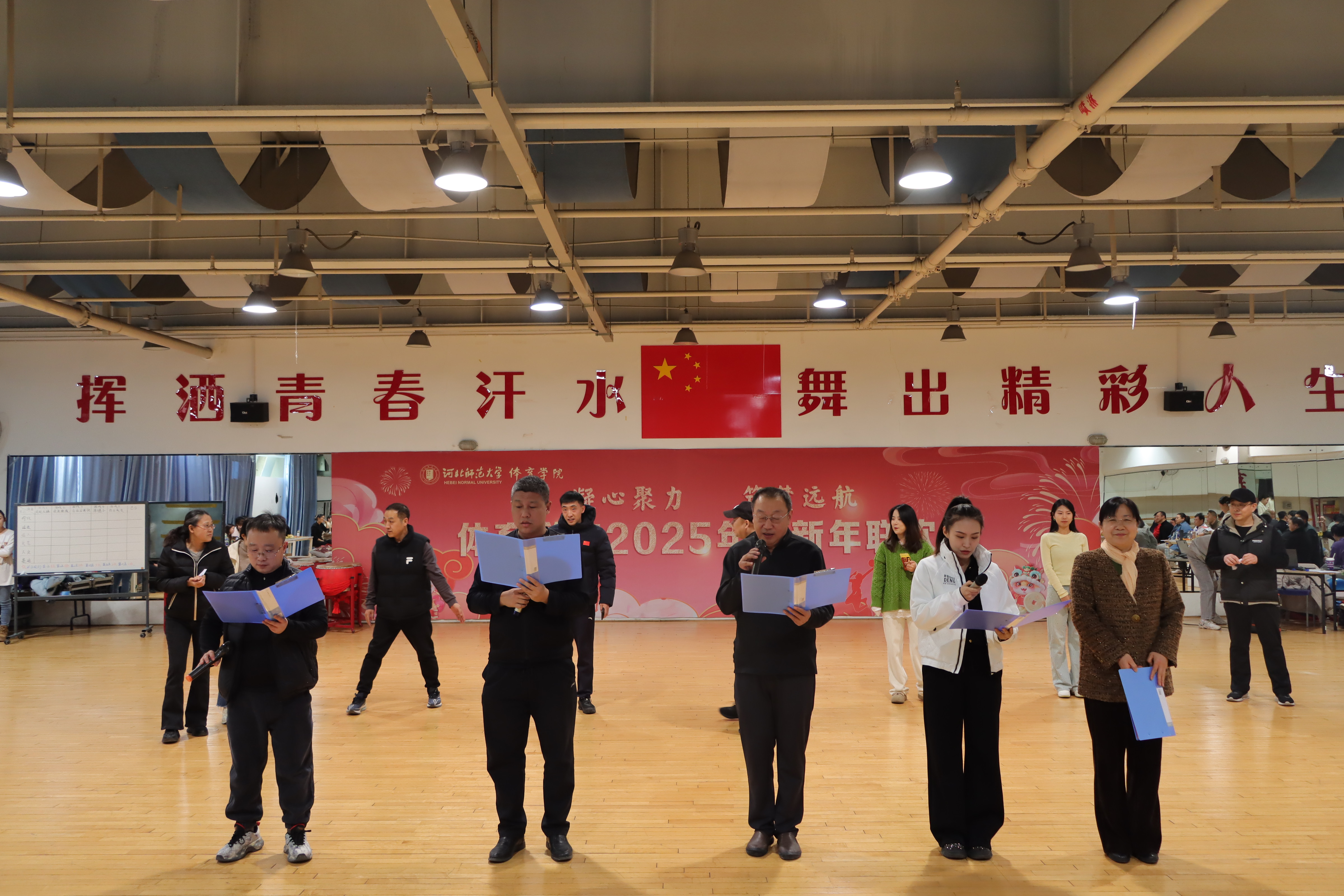 联欢过程中,百家乐在线 领导班子走上舞台,向全体教职工致以节日的问候与美好的祝愿。院长马剑在致辞中细述了百家乐在线 在教学、科研、竞赛等方面取得的显著成绩,这些离不开每一位教职工的辛勤付出与无私奉献;书记张晖在送上新年祝福的同时,也对新的一年寄语期望,希望大家继续秉持体育人的拼搏精神,凝心聚力、携手共进,为百家乐在线 高质量发展贡献更多力量。随后,领导班子与教职工共同参与游戏、表演节目,现场氛围温馨融洽,展现了团队的凝聚力。
